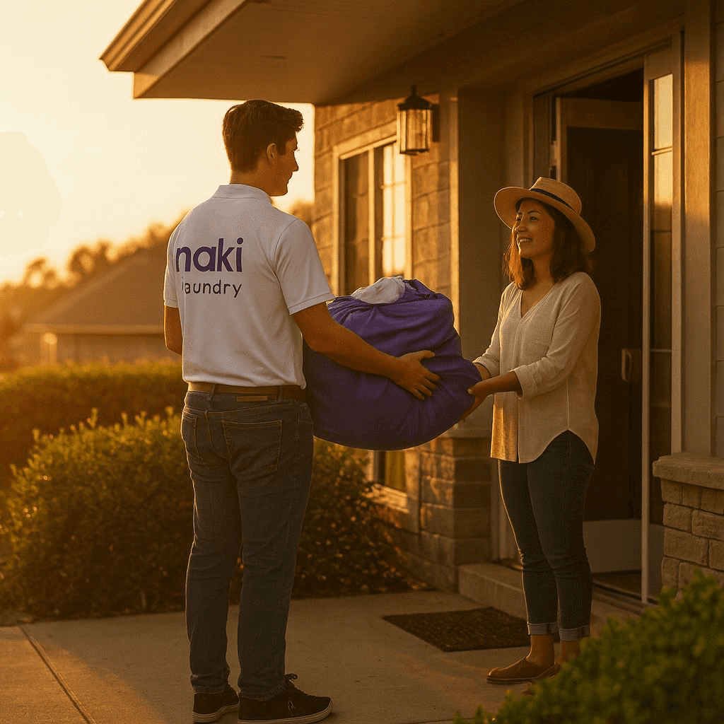 Your cleaned laundry and dry cleaning will be returned in complimentary Naki Laundry bags, ready for use on your next pickup.